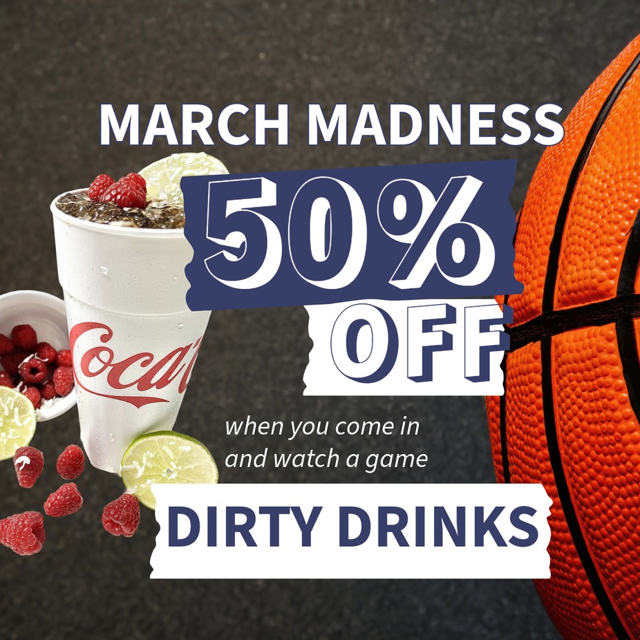 50% OFF all Dirty Drinks when you come in and watch a game